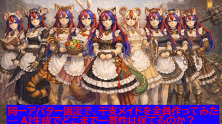 ChatGPT同一アバター固定で、干支メイドを全員作ってみた話― AI生成でどこまで一貫性は保てるのか? 同一アバター固定で、干支メイドを全員作ってみた話― AI生成でどこまで一貫性は保てるのか?AIでキャラクターを作っていると、よく言われることがある。「結局、毎回別のキャラになるんじゃないの?」と。そこで今回は、同一アバターを完全に固定したま... 2026.01.21ChatGPT未分類