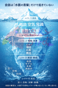 会話の衝突は、水面下のレイヤーが噛み合っていないときに起きやすいのです。