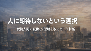 未分類人に期待しないという選択――受動人間の変化と、距離を取るという判断―― 人に期待しないという選択 ―― 受動人間の変化と、距離を取るという判断 ―― 最近、「なぜ話が噛み合わないのか」「なぜ変わらない人が増えたように感じるのか」と考えることが増えた。 これは特定の誰かを非難したいわけではない。ただ、社会の中で人... 2026.02.05未分類