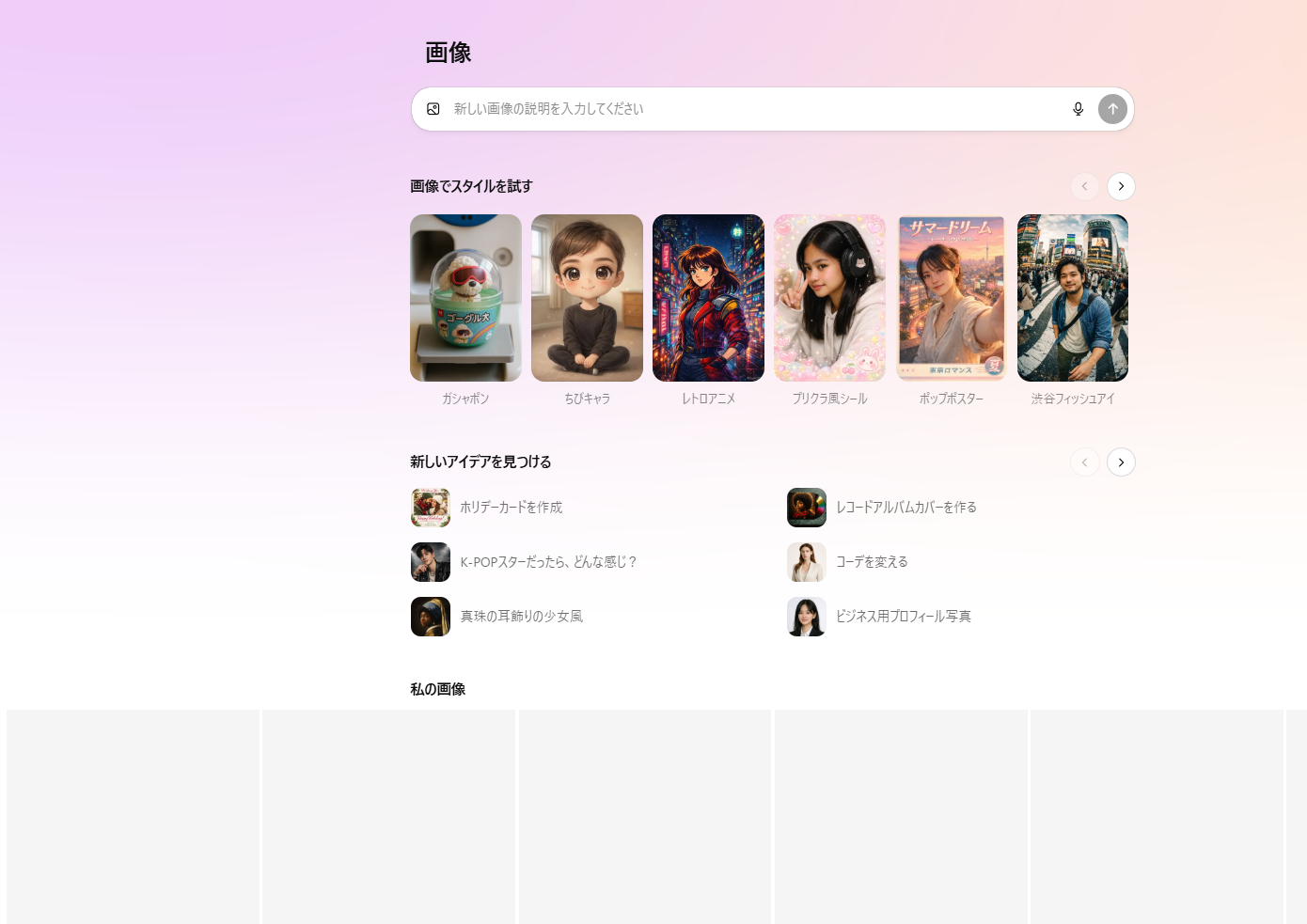 最近のImages画面では、プロンプト入力だけでなく、